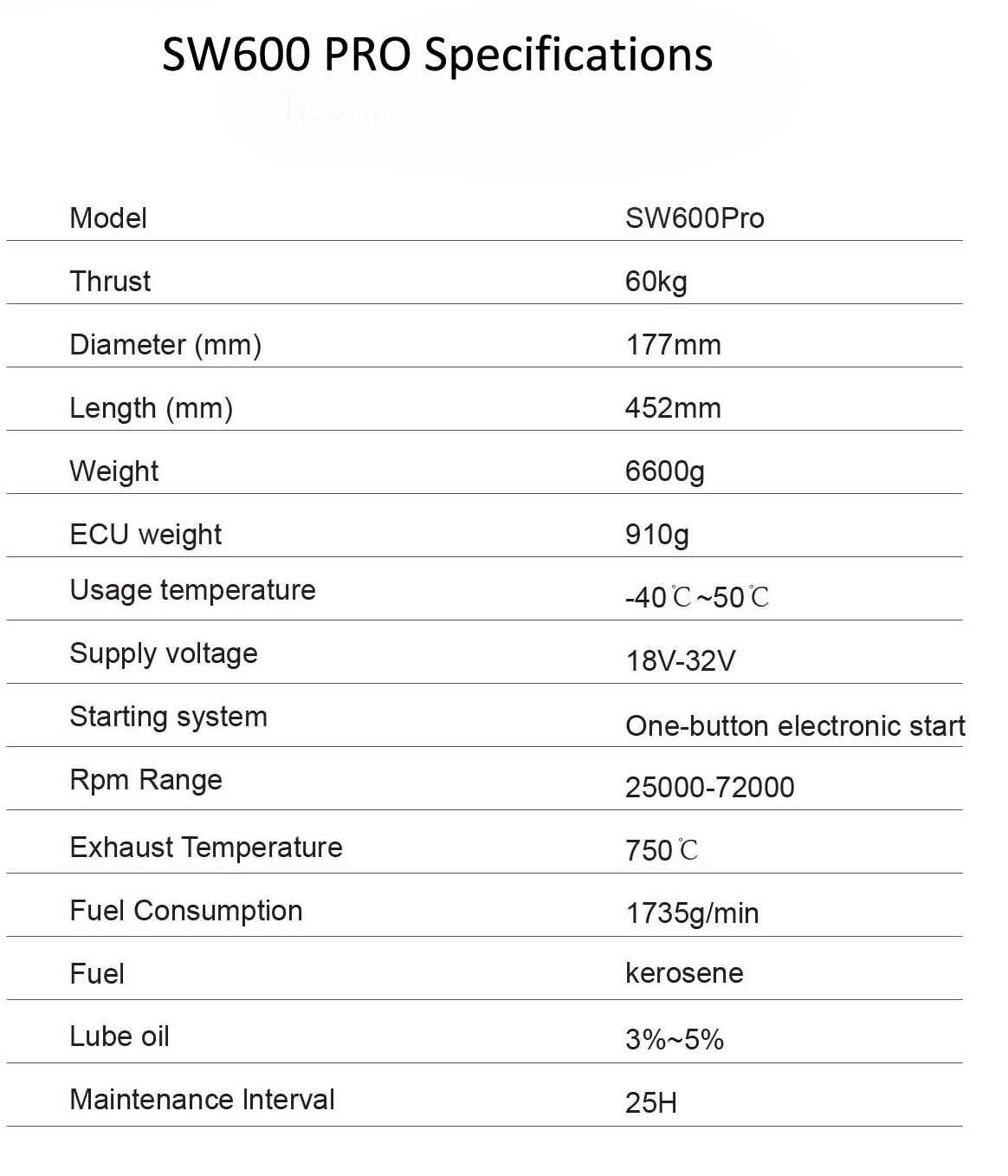 Swiwin Turbines SW600PRO - UAV - 60KG/132Lb - SPECIAL ORDER ITEM - WAIVER REQUIRED